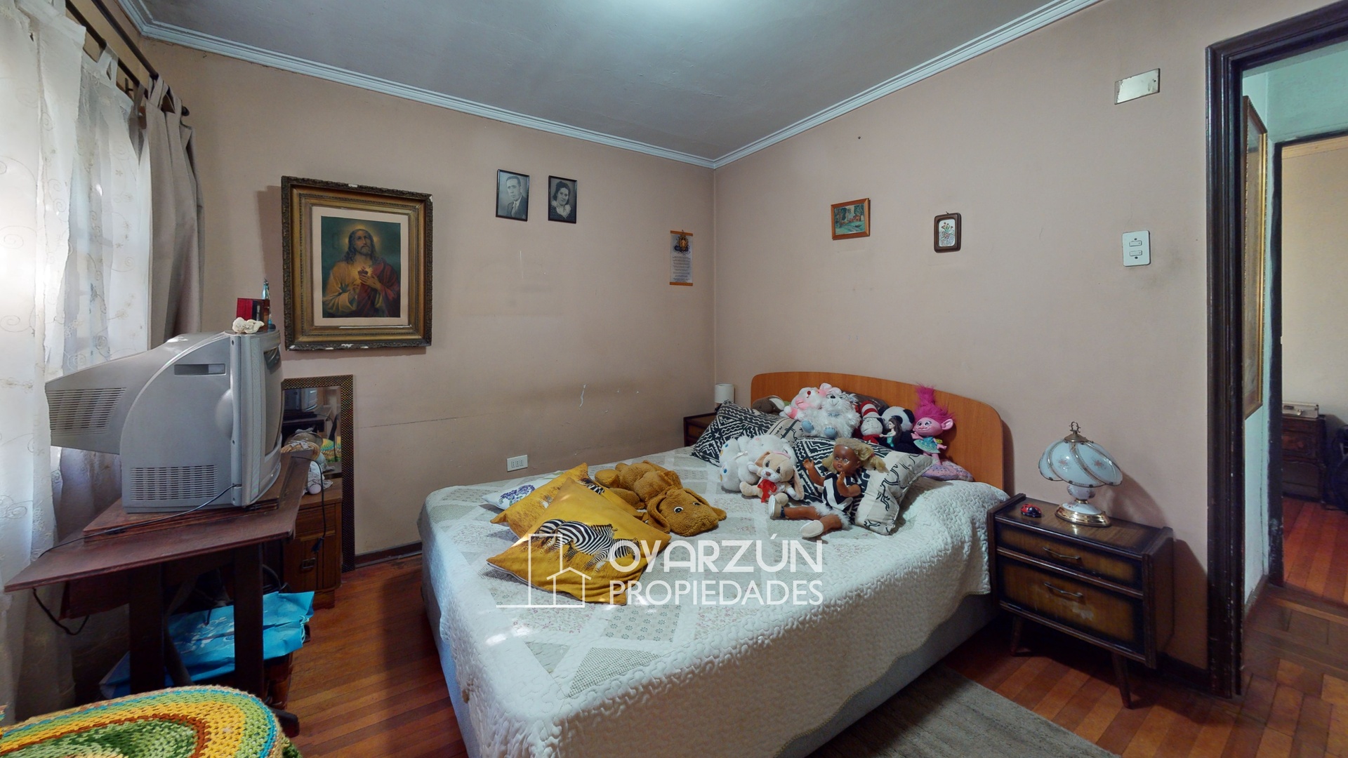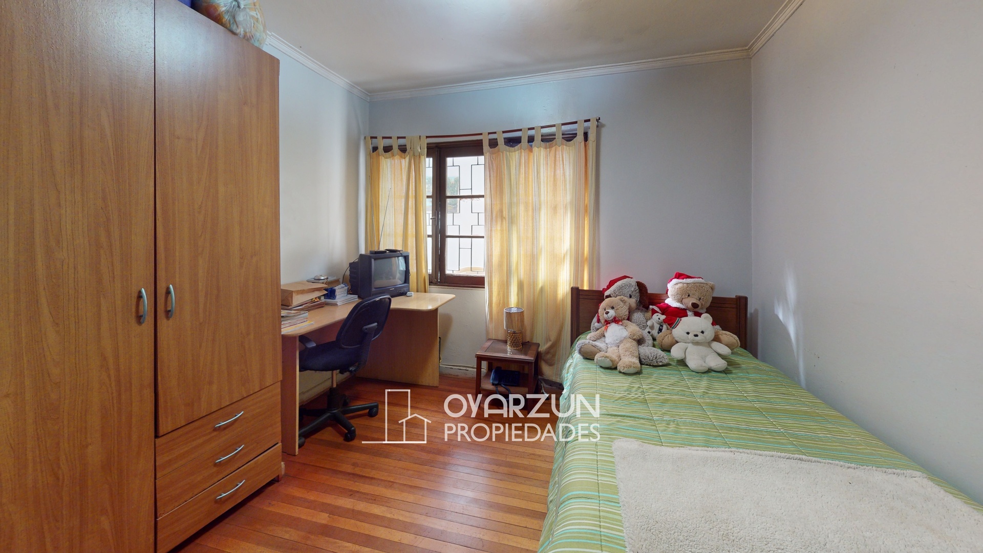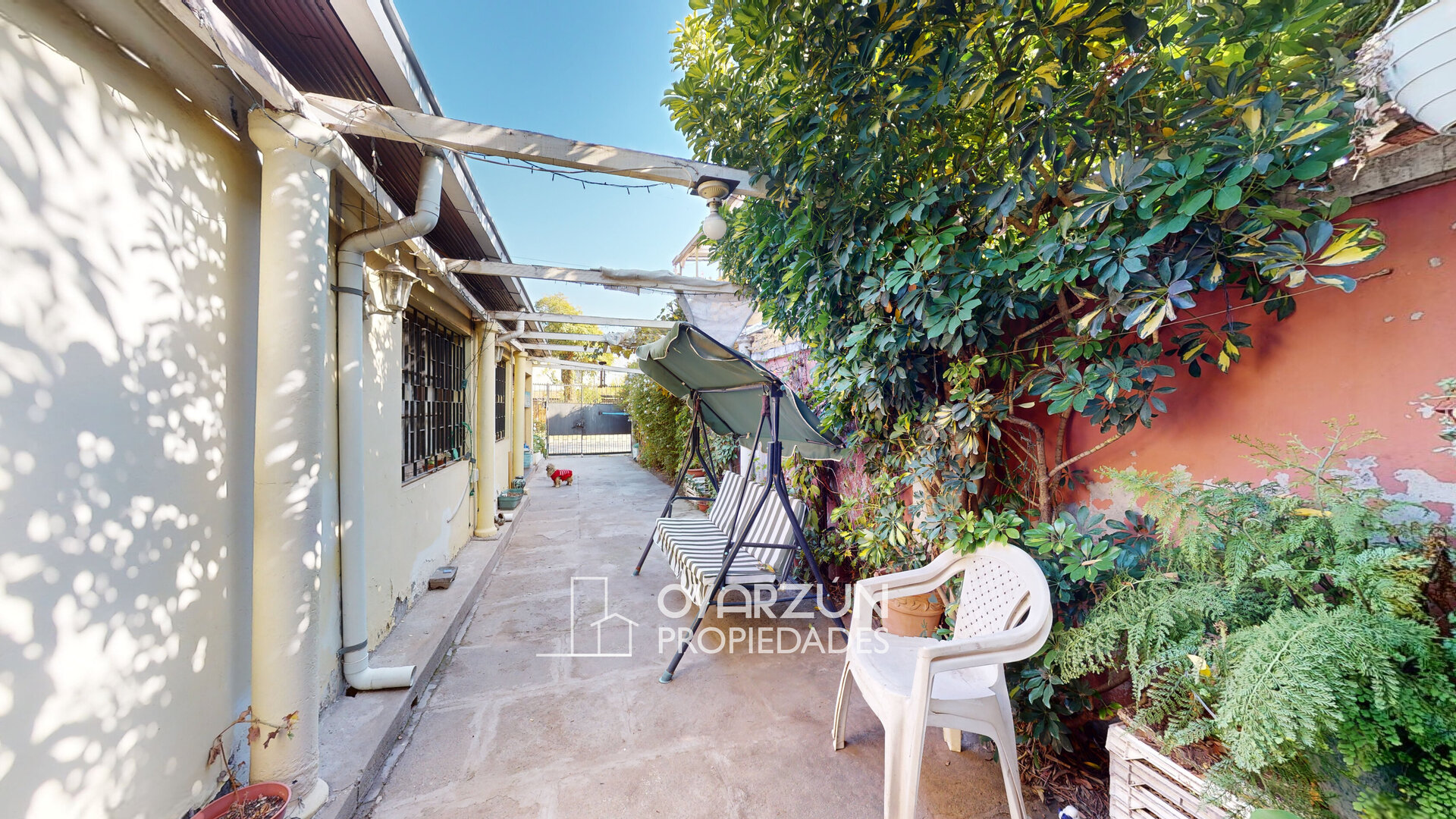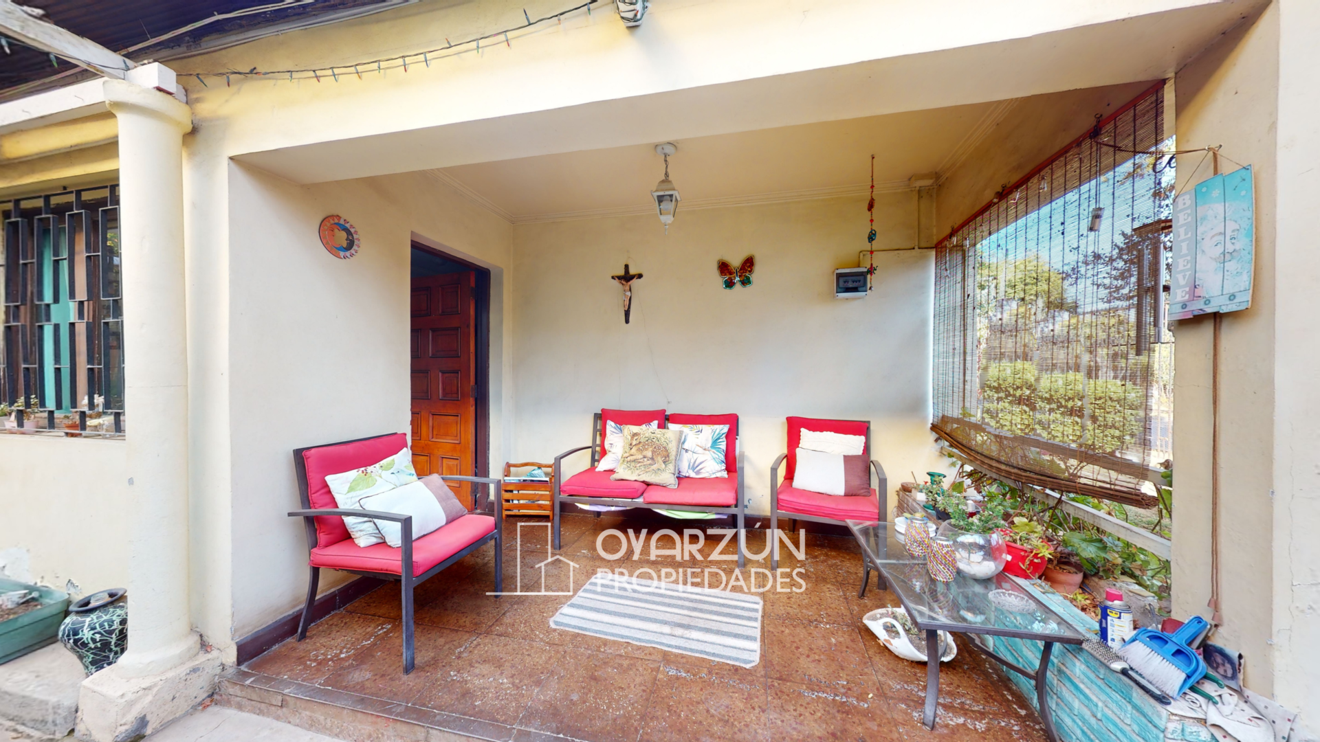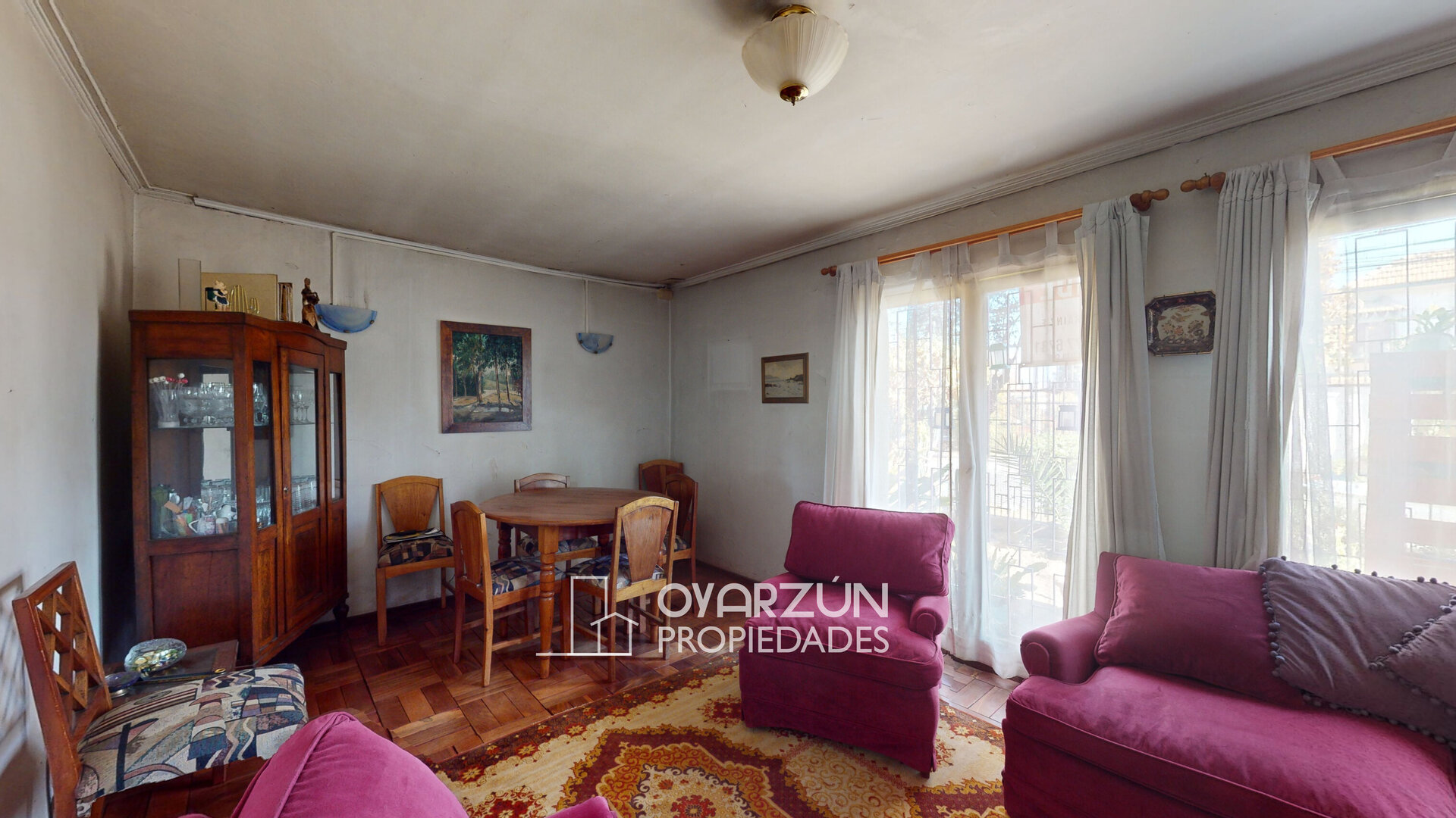 Sin deuda hipotecaria. Hermosa y acogedora casa familiar en sector residencial de la comuna de La Reina que cuenta con porche, hall de distribución bastante espacioso, living y comedor juntos con amplios ventanales, muy luminoso, piso de parquet, 3 dormitorios amplios, 1 baño, cocina amoblada, pasillo lateral interior que conecta con la construcción trasera donde hay una sala de estar, 1 dormitorio más baño completo, logia y bodega, todo regularizado. Cuenta con jardín y espacio para estacionar 3 vehículos.