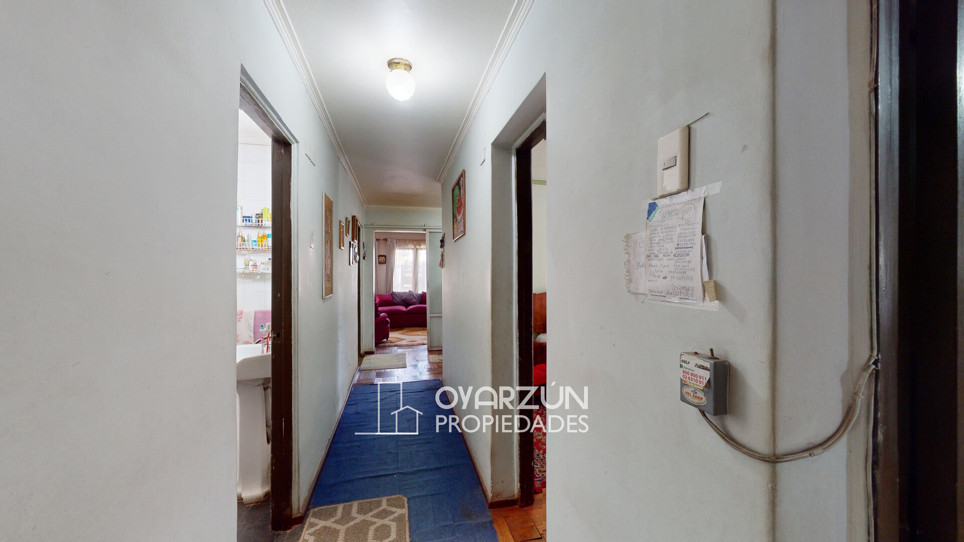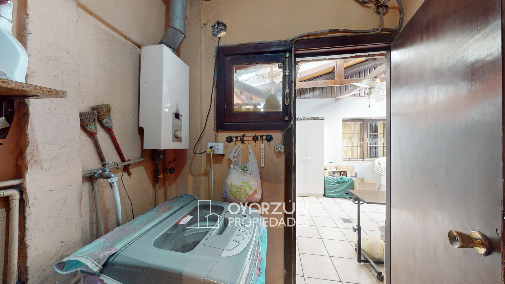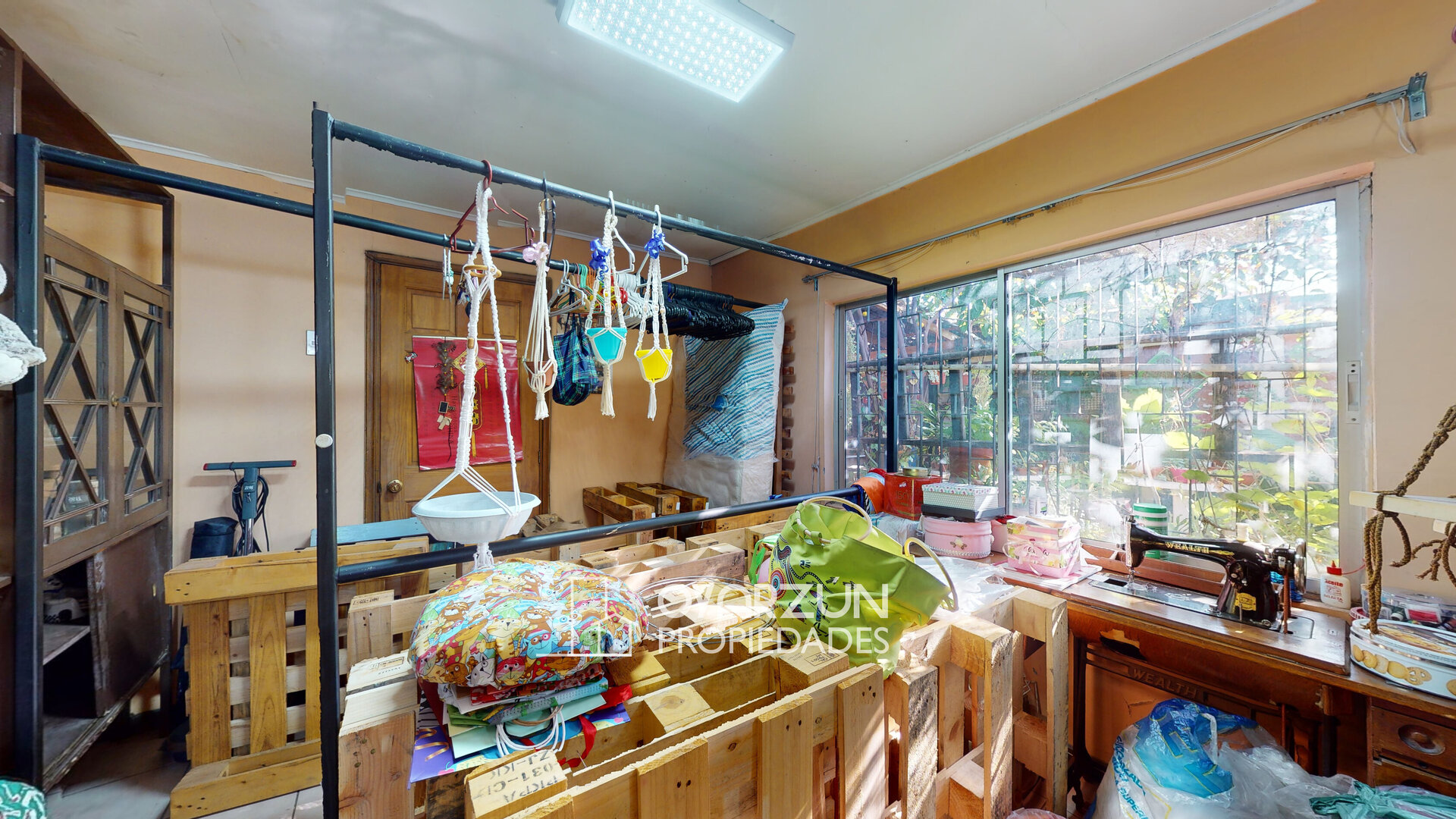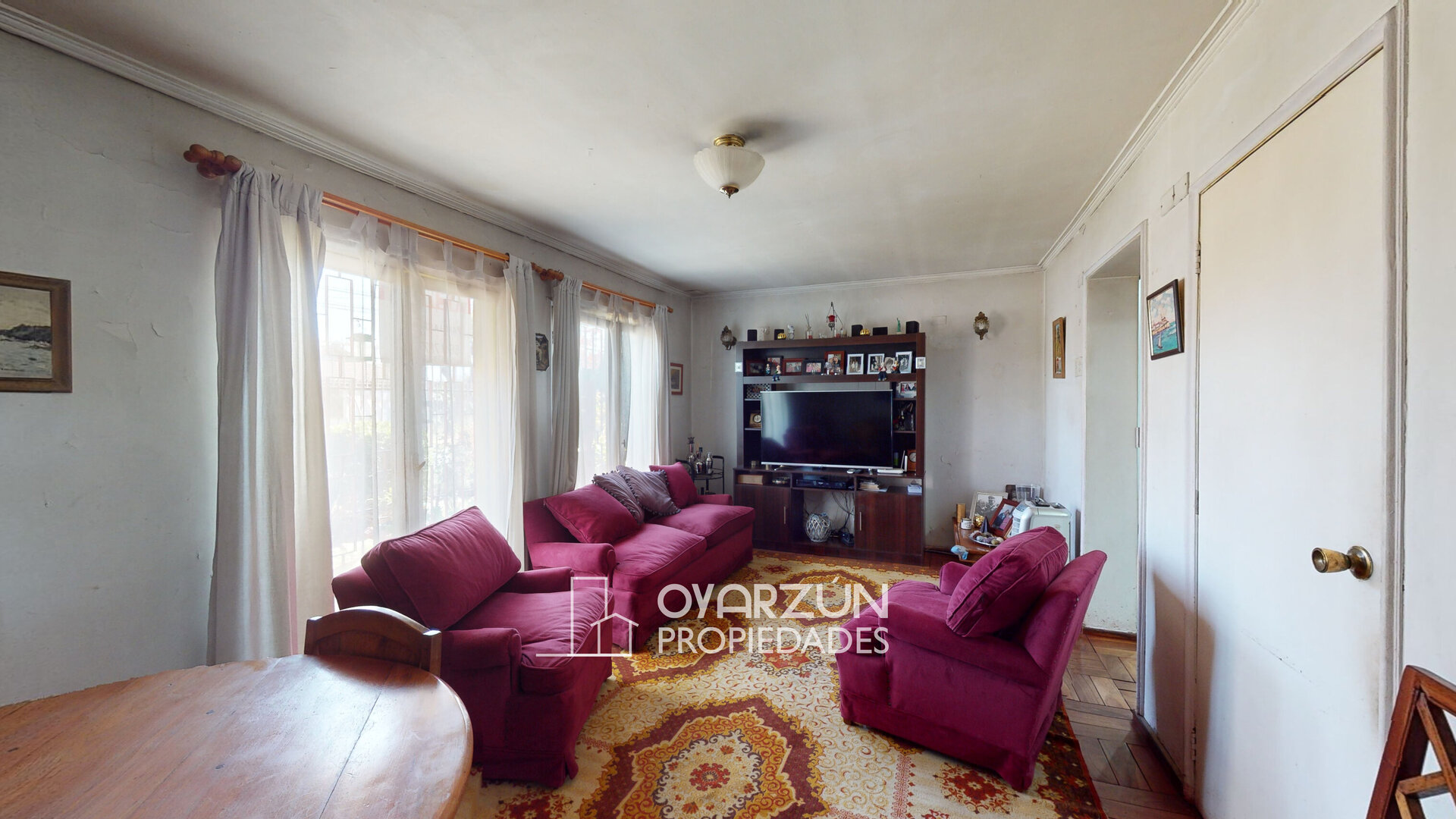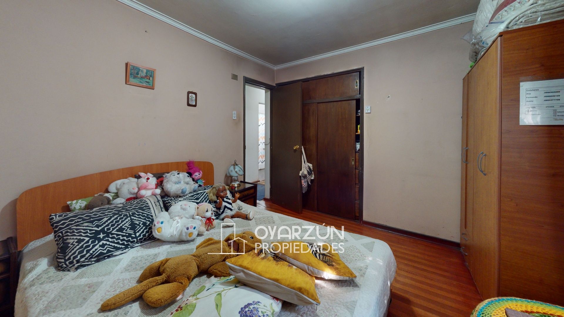 Sin deuda hipotecaria. Hermosa y acogedora casa familiar en sector residencial de la comuna de La Reina que cuenta con porche, hall de distribución bastante espacioso, living y comedor juntos con amplios ventanales, muy luminoso, piso de parquet, 3 dormitorios amplios, 1 baño, cocina amoblada, pasillo lateral interior que conecta con la construcción trasera donde hay una sala de estar, 1 dormitorio más baño completo, logia y bodega, todo regularizado. Cuenta con jardín y espacio para estacionar 3 vehículos.